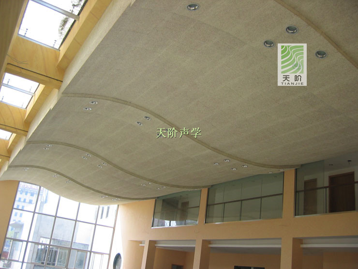 上海大學游泳館工程使用了1200方的木絲吸音板,安裝在天花,不僅美觀。對各種頻段的吸聲效果的很明顯,可以有效避免回聲。