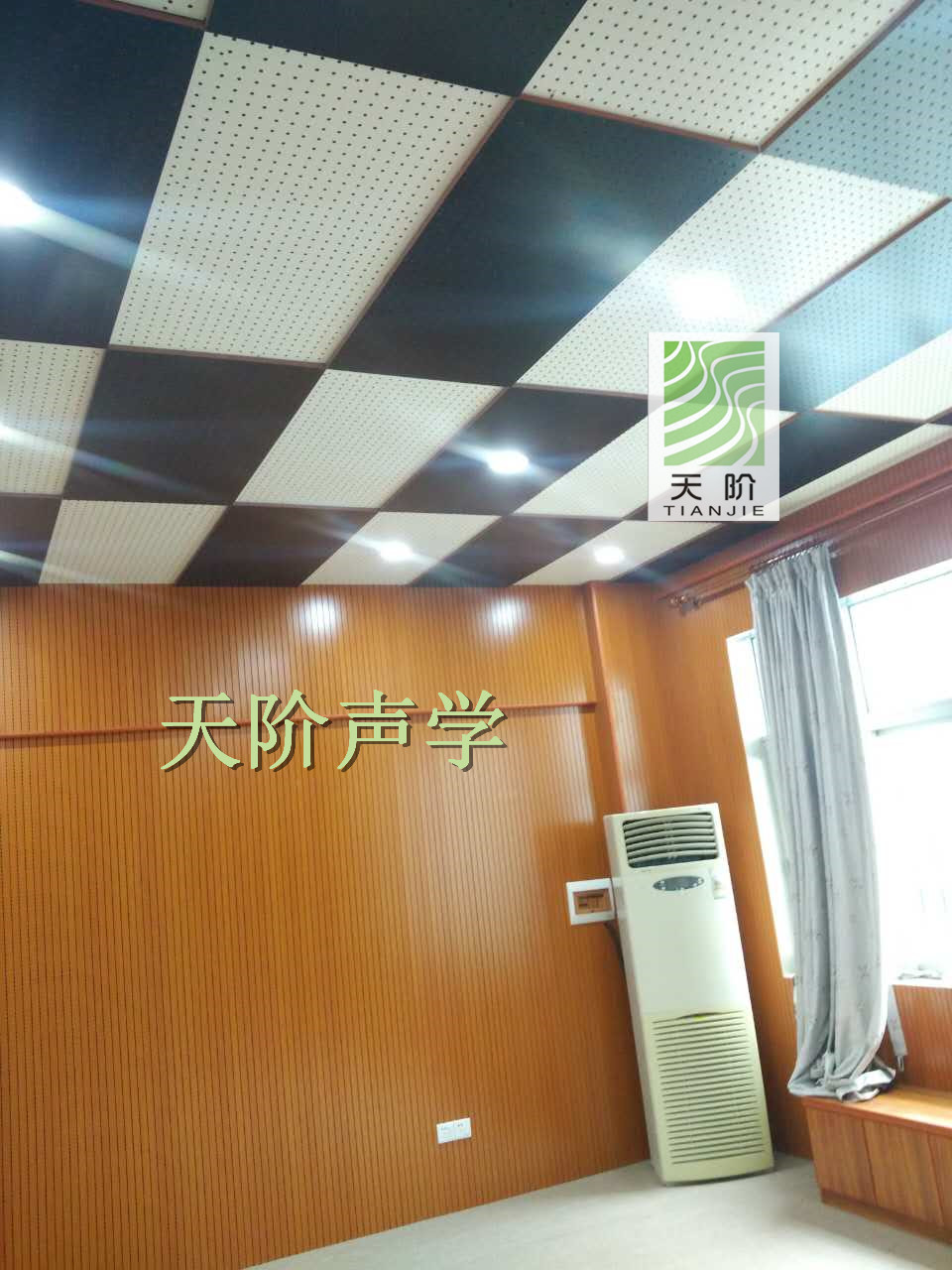 天階聲學孔木吸音板采用優質的中纖板、具有環保、防火、防水等性能,飾面顏色及材料選擇性廣,能很好地滿足客戶多樣化的聲學及裝飾需求。較槽木吸音板,孔木吸音板相對抗撞擊能力強。