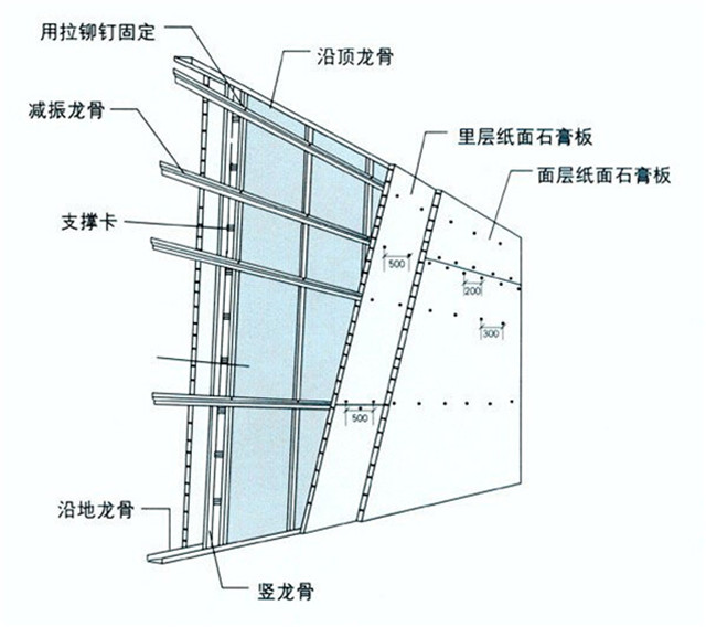 3. 墻頂處理: 隔音材質(zhì):隔音吊頂 使用木龍骨和加礦纖板或厚夾板