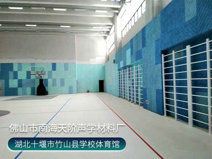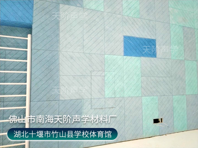 湖北十堰市竹山縣學(xué)校項(xiàng)目選用彩色噴色的木絲吸音板,原料是白楊木絲纖維制作而成,環(huán)保安全,遇火不燃燒,木絲間吸音降噪,效果顯著,表面有彩色噴色和原木色可選。