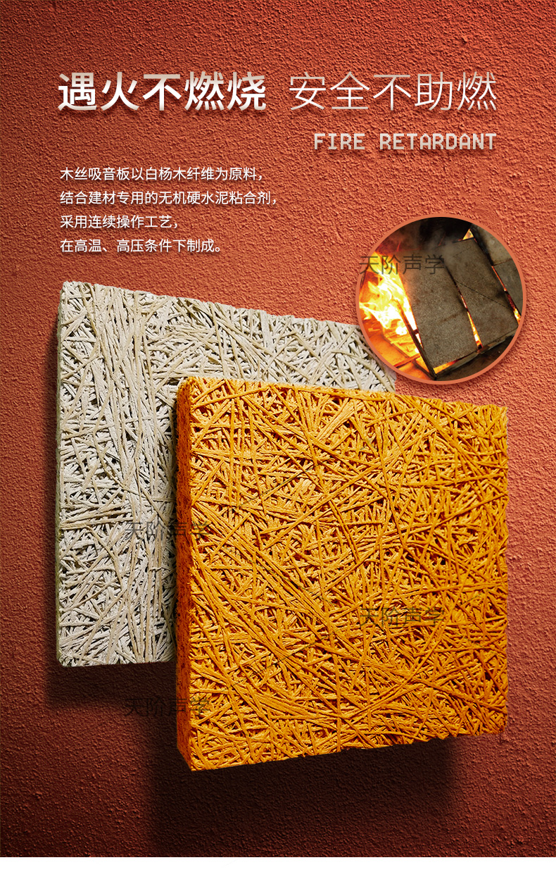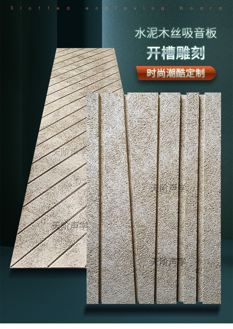 木絲吸音板以白楊木纖維為原料,結合獨特的無機硬水泥粘合劑,采用連續操作工藝,在高溫、高壓條件下制成。該產品擁有只有通過合成若干不同的建筑材料才能獲得的物理特性。外觀獨特、吸音良好--獨有的表面絲狀紋理,給人一種原始粗獷的感覺,滿足了現代人回歸自然的理念。表面可做飾面噴色和噴繪處理.
