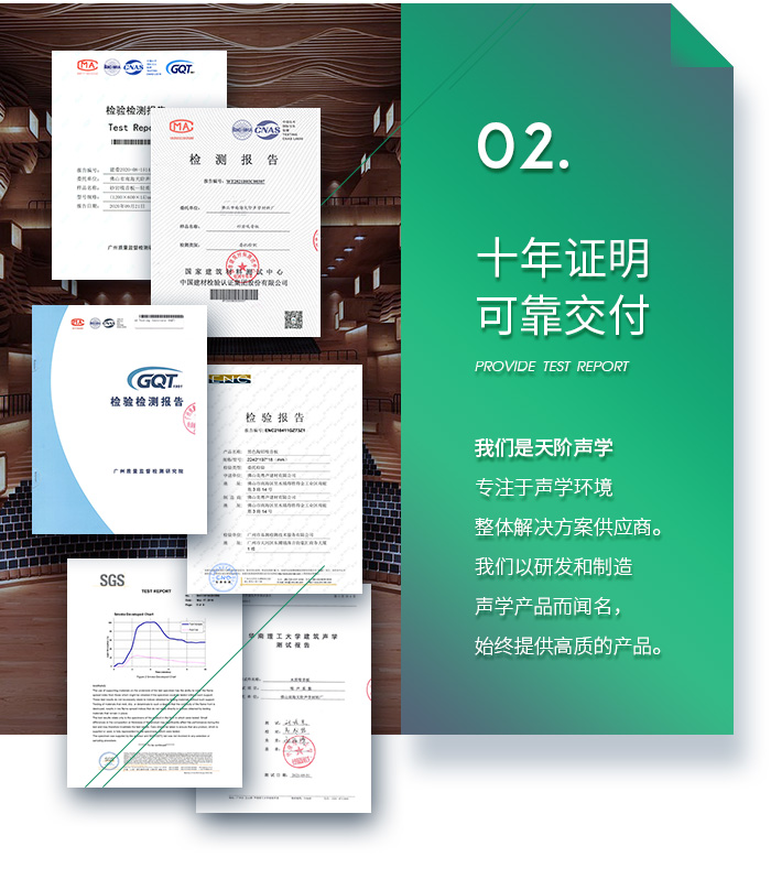 佛山市南海天階聲學(xué)材料廠前身為廣州天階聲學(xué)材料有限公司,成立于2008年,后因擴(kuò)大經(jīng)營注冊(cè)成立佛山市南海天階聲學(xué)材料廠,工廠占地3000多平米,從單一的生產(chǎn)銷售到:聲學(xué)設(shè)計(jì)-生產(chǎn)-銷售-聲學(xué)工程施工一體化,是一家專業(yè)的聲學(xué)環(huán)境解決方案綜合服務(wù)商。