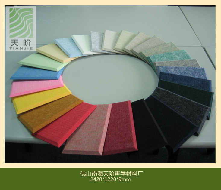 目前市面上現有的聚酯纖維可以分為通用型聚酯纖維吸音板、柔韌性聚酯纖維吸音板和彩色聚酯纖維吸音板三種,其中不同的聚酯纖維都有其不同的用途,更顯聚酯纖維的專業性。目前我們用的比較多的是通用型與柔韌性聚酯纖維為主,而彩色的聚酯纖維吸音板處于高速發展的階段,產品還處于考察的階段,其公眾認可對還需要較長的一段時間來檢驗。