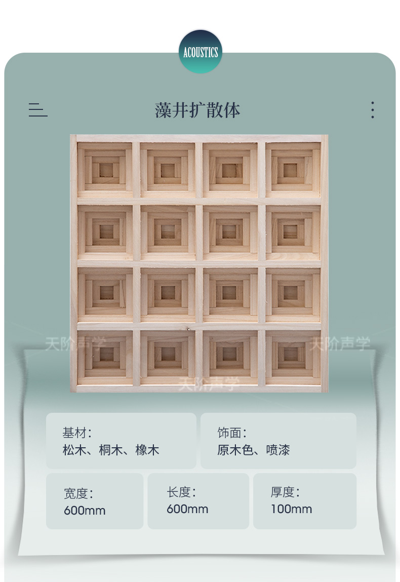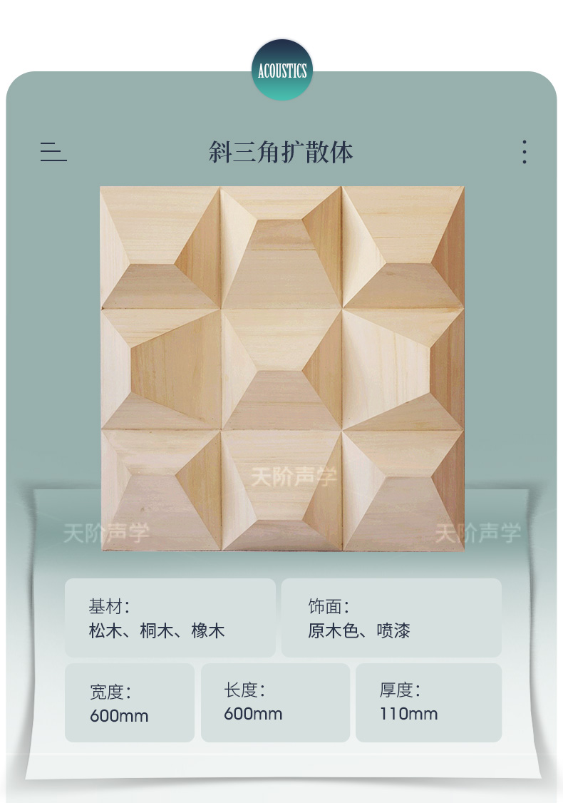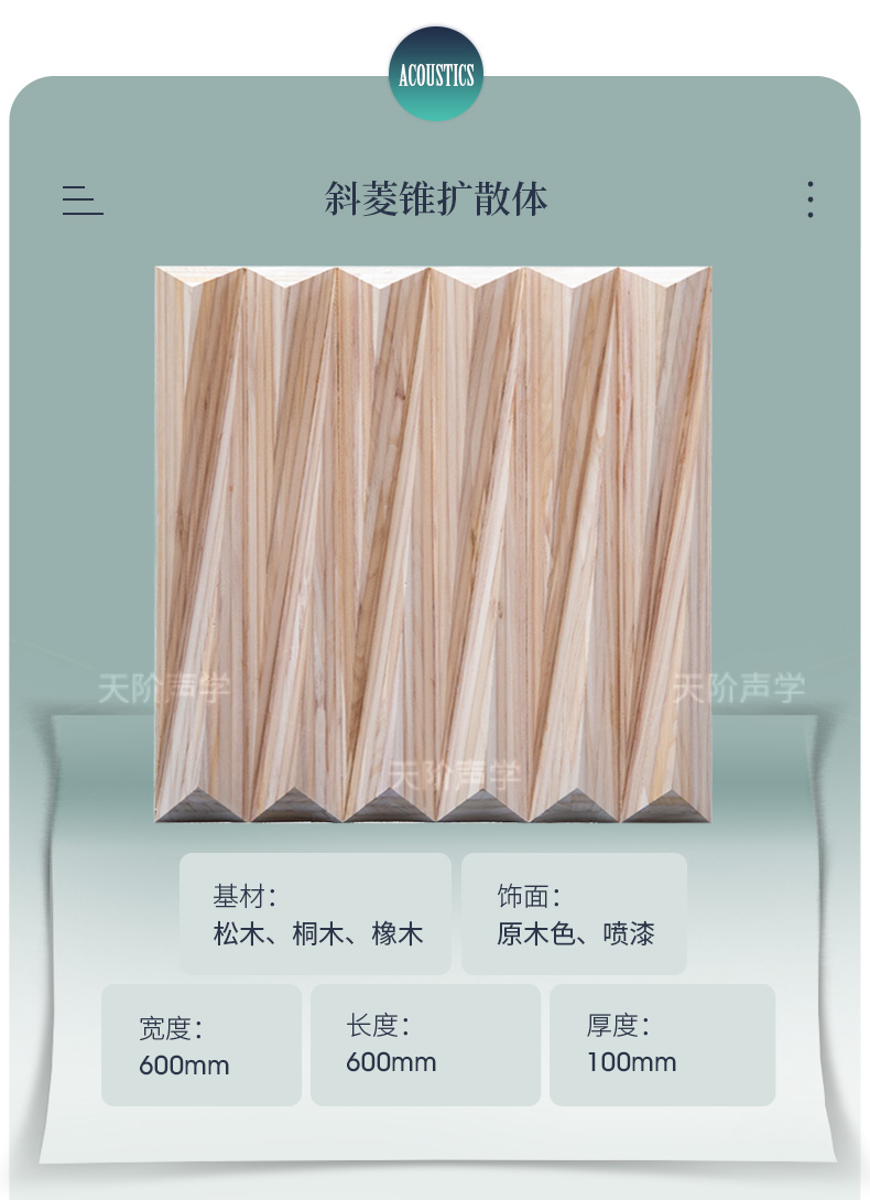 您現在的位置首頁 ? 槽木木質吸音板 - 軟包 - 防火吸音板 - 聲學產品 ? 擴散體木質踏步擴散體